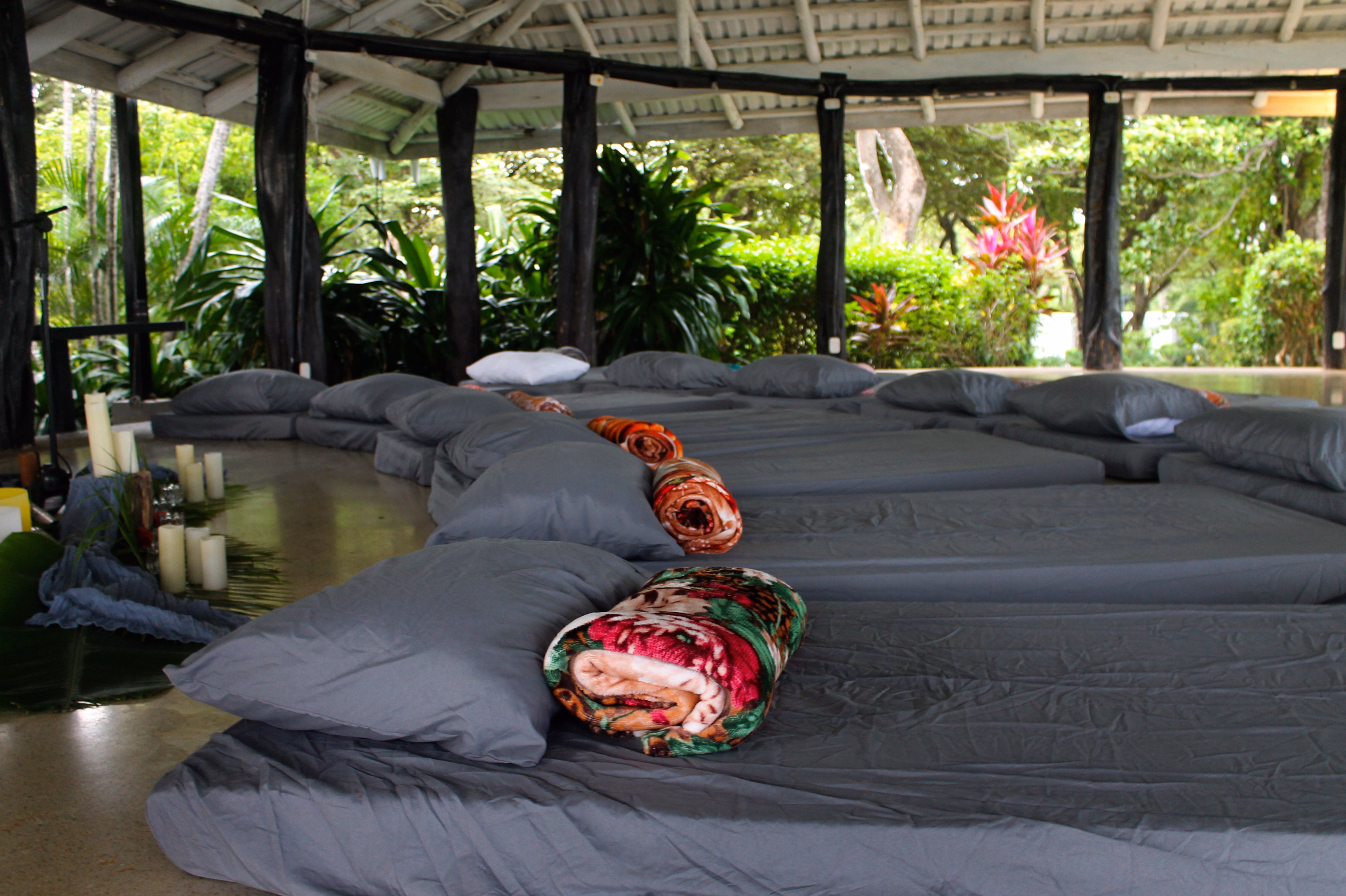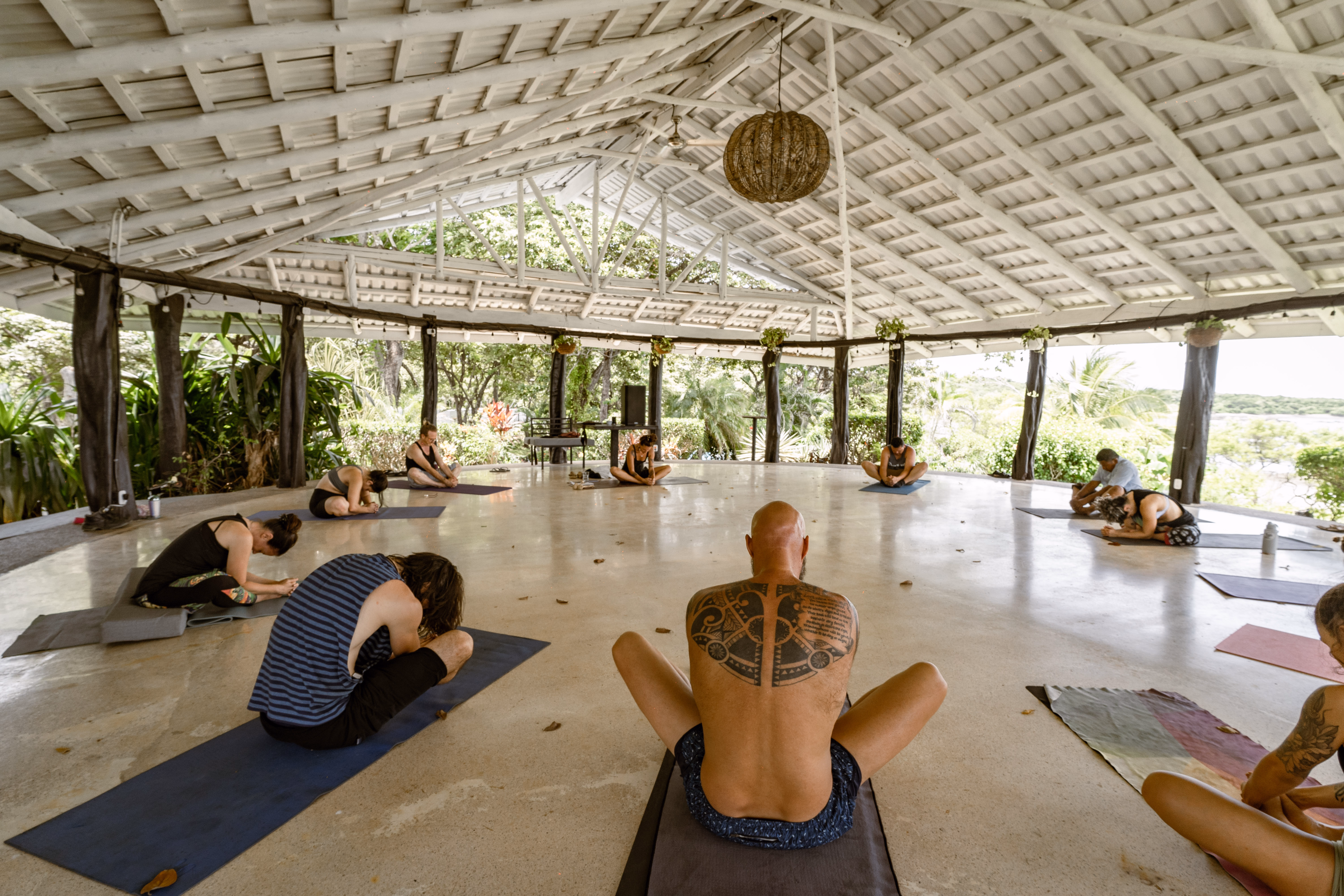 Infraestructura íntima y versátil con rancho techado multifuncional equipado con cocina y elixir bar, perfecto para yoga, meditación, talleres y ceremonias, más acceso directo a playa virgen para prácticas al amanecer.